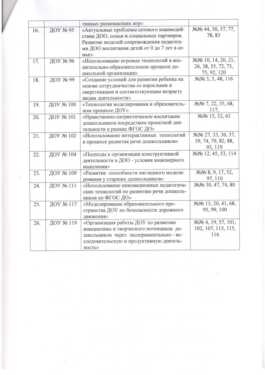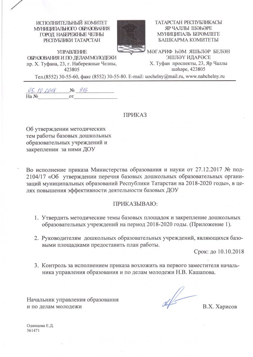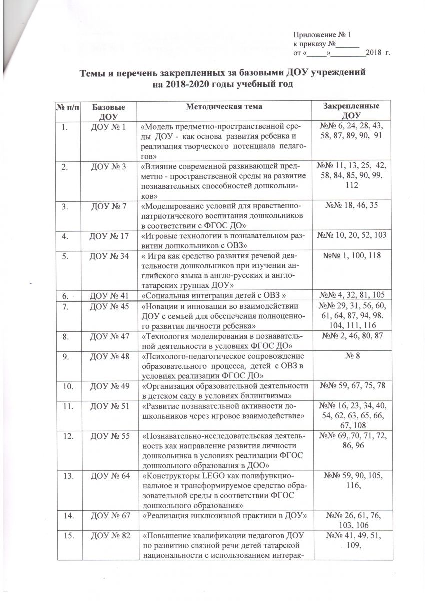 Приказ о методических темах работ базовых ДОУ