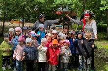 24 июня в нашем детском саду прошло спортивное мероприятие «Пираты на Олимпийских играх». Праздник начался с приветствия и с традиционной зарядки под веселую ритмичную музыку, дети получили заряд бодрости и оптимизма, энергично выполняя упражнения с инструктором по физической культуре Шамсутдиновой Н. Ю. А дальше… к нам пожаловали необычные гости- пираты Гарри и Крюк. Они прибыли в детский сад с целью победить всех на Олимпийских играх. Но не тут то было! В эстафетах нашим детям не было равных. Они прыгали, бегали змейкой, проходили полосу препятствий, перетягивали канат-все спортивные упражнения выполнялись на 5+. Пираты были не в числе первых. В перерывах между эстафетами дети читали стихи, отгадывали загадки на спортивную тему. Гарри и Крюк оценили физическую подготовку наших ребят и пообещали тоже заняться спортом. В завершении олимпиады, воспитатели для детей устроили дискотеку.