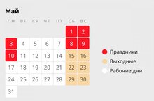 Дни с 1 по 3 и с 8 по 10 мая изначально являются выходными и государственными праздниками. В эти дни дошкольные детские учреждения будут закрыты.