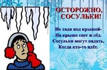 Помните, в это время приходит опасность, имя которой – травматизм!Будьте внимательны, сосулька хрупка и может упасть вам на голову.