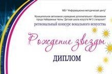 Поздравляем Кадырову Алину с победой в региональном конкурсе вокального искусства "Рождение звезды",