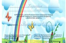 Поздравляем Кабаран Егора с победой в республиканском конкурсе чтецов для детей с ОВЗ "Дорогою добра", воспитанника логопедической группы № 2. Руководитель: Фардеева Э.З., учитель-логопед ДОУ.