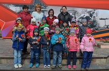 По священной традиции 8 мая в старших группах детского сада прошли тематические занятия, посвященные 70-летию Великой Победы. Затем дети подготовительных групп возложили цветы к памятнику в парке "Победы" и почтили минутой молчания героев ВОВ.