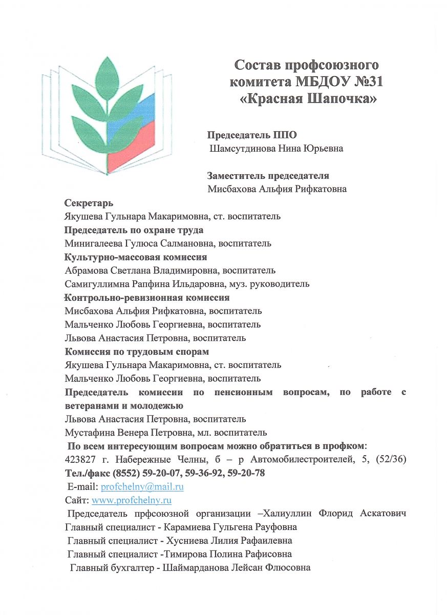 Председатель первичной профсоюзной организации - Шамсутдинова Нина Юрьевна