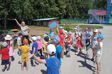 На территории детского сада провели с детьми танцевальные флешмобы с движениями 22.07.2022