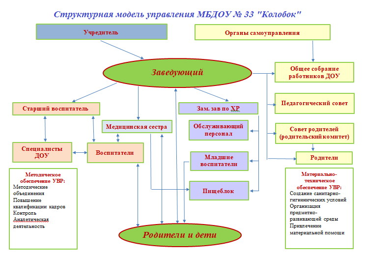 старший воспитатель, заместитель заведующего по административно-хозяйственной части, главный бухгалтер, которые взаимодействуют с соответствующими объектами управления.
