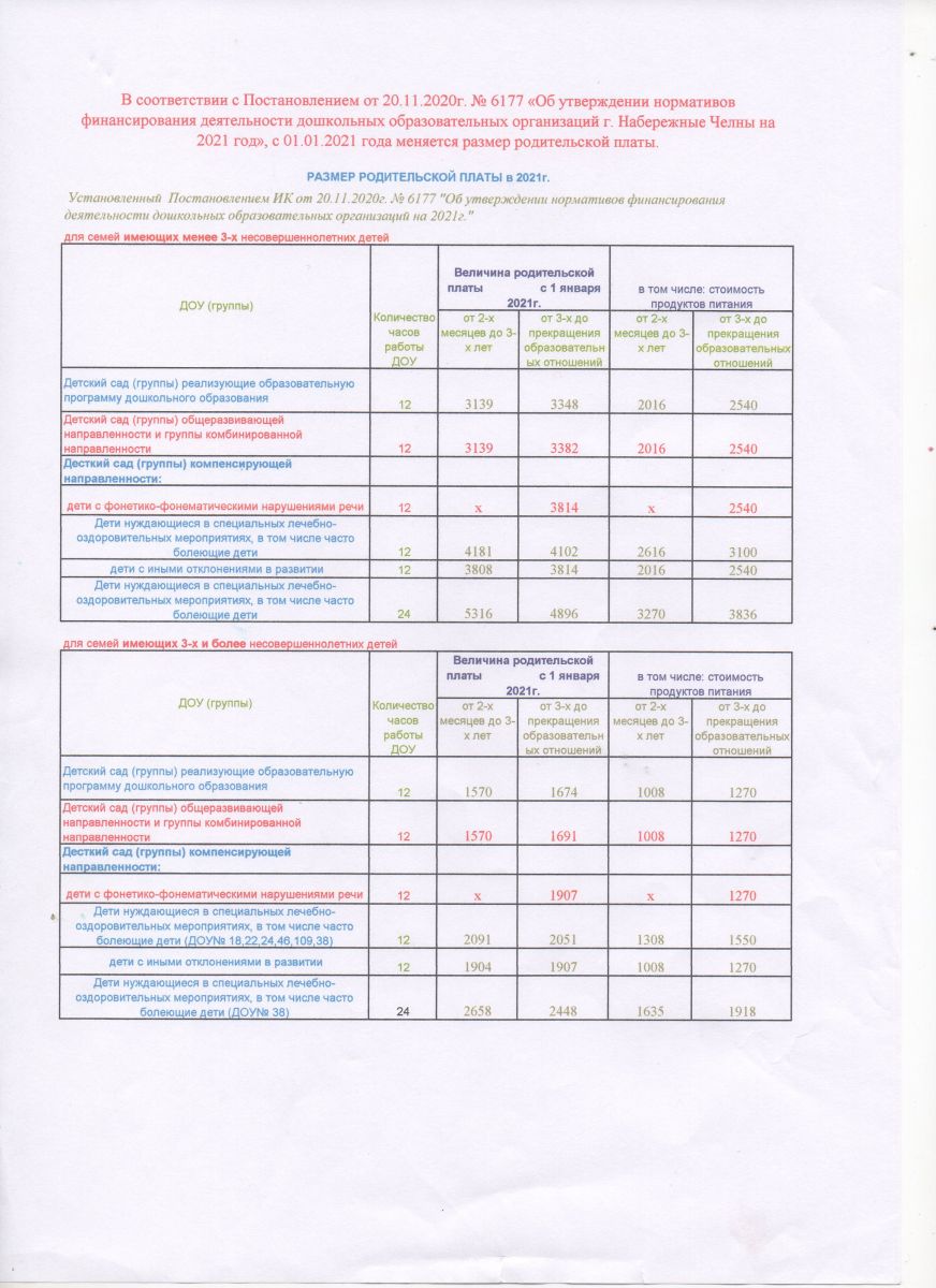 Постановление от 20.11.2020г. № 6177 «Об утверждении нормативов финансирования деятельности дошкольных образовательных организаций г. Набережные Челны на 2021 год».
