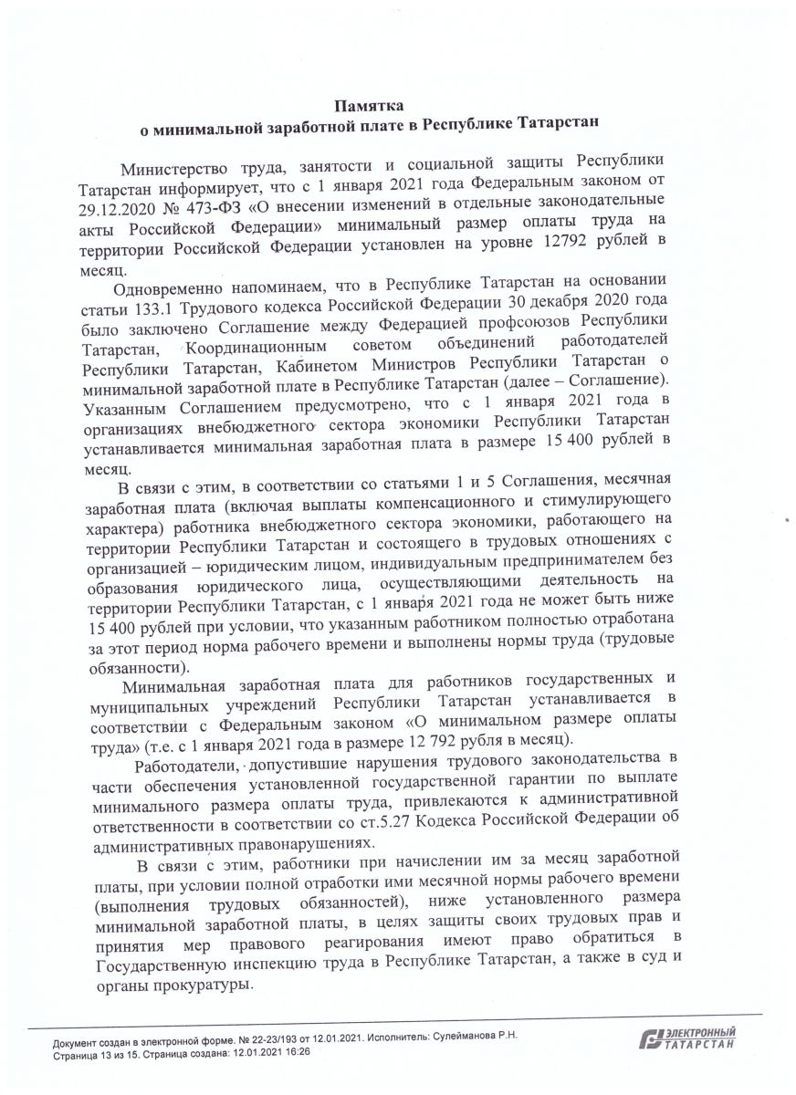 - Памятка о минимальной заработной плате в РТ 15.02.2021