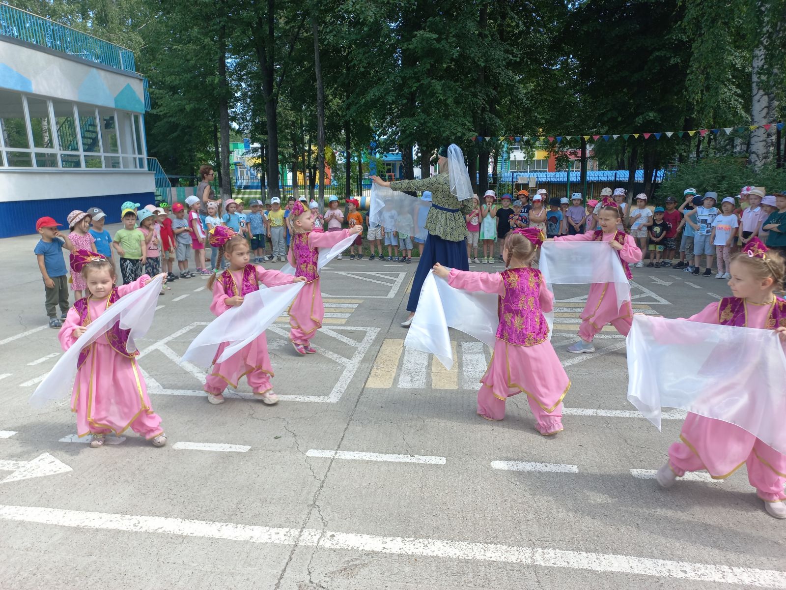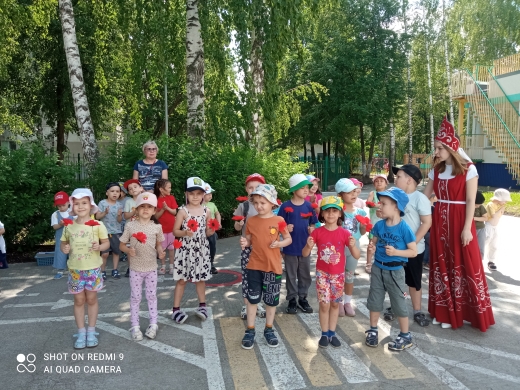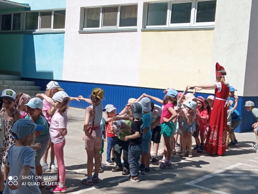 31 мая 2024 года в детском саду прошла квест-игра «Путешествие в летний день!», приуроченная к Международному дню защиты детей. Дети встретились с любимыми персонажами мультфильмов и сказок Шапокляк, Карлсоном, Забиякой и Феей музыки, фокусником. Было много загадок, заданий на смекалку, игр-эстафет, песен и музыкально-ритмических движений! За каждое правильно выполненное задание ребята получали фрагмент карты, с помощью которой нашли спрятанное Лето. Праздник закончился общим флешмобом «Доброта на ладошке».