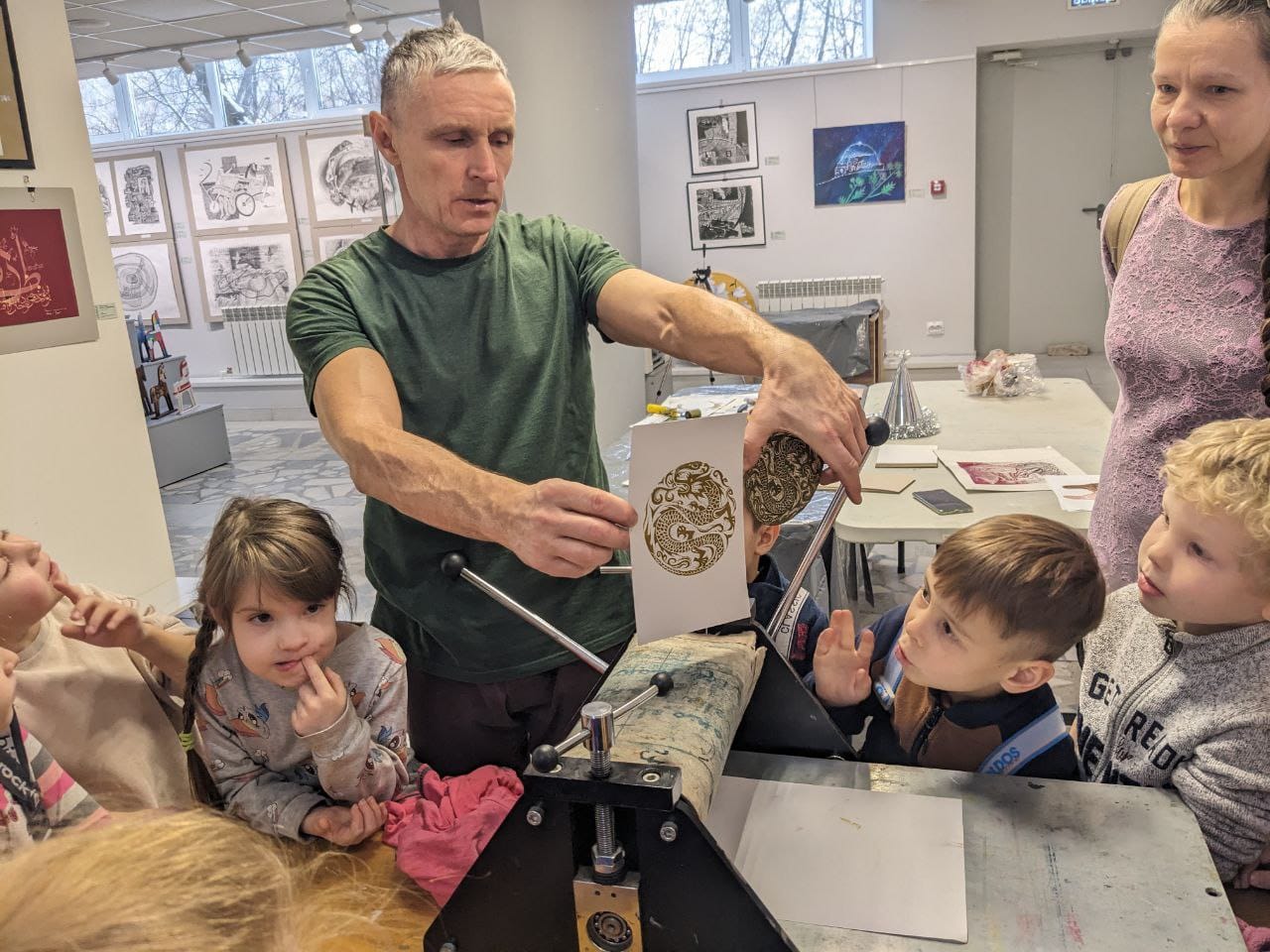 Воспитанники группы С. Френе посетили картинную галерею г. Набережные Челны. Ребятам рассказали про картины, виды росписи и показали способы декорирования картин и поделок. Сотрудники галереи провели мастер-класс "Изготовление новогодней открытки", а также ребята участвовали в печати на станке символа года-Дракона и узнали новое понятие "Линогравюра"(отпечаток после станка). Дети получили массу новых впечатлений и знаний. Благодарим сотрудников галереи за приобщение наших воспитанников к искусству.