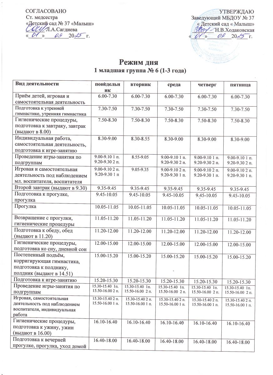 Режим дня 1 младшей группы №6 на 2025-2026 учебный год.jpg
