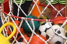 "Поймай мяч", "Передай мяч по кругу", "Сбей кегли мячом".