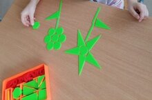 Дети сделали из счетных палочек и геометрических фигур танки, самолёты, цветы, робота, куклу и зайчика.