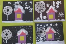 с домиком, занесенным снегом, смастерили ребята группы № 7. Сразу навевается новогоднее настроение. Зимняя предновогодняя сказка появилась на листах детей. -