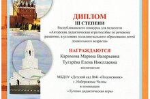 Поздравляем наших воспитателей Каримову Марину Валерьевну и Тугареву Елену Николаевну с победой в Республиканском конкурсе для педагогов "Авторская дидактическая игра/ пособие по речевому развитию, в условиях полилингвального образования детей дошкольного возраста" в номинации "Лучшая дидактическая игра"