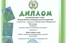 Поздравляем нашу воспитанницу с победой в муниципальном этапе Всероссийского конкурса детского рисунка "Эколята - друзья и защитники природы"