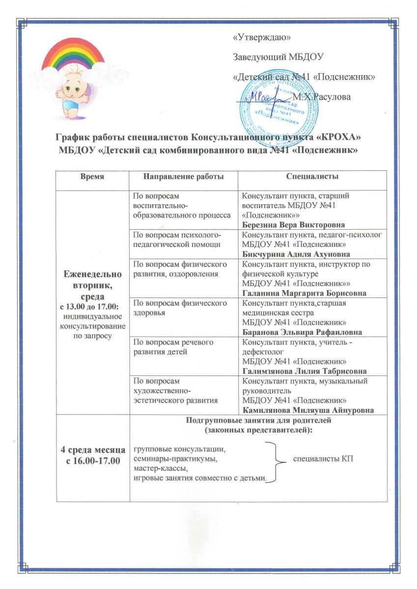 Уважаемые родители! На базе детского сада работает "Консультационный пункт "Кроха" для родителей (законных представителей).