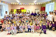 Воспитанники и сотрудники детского решили поддержать акцию своими фиолетовыми нарядами -