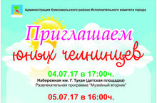 Уважаемые родители!!! Администрация Комсомольского района Исполнительного комитета города Набережные Челны приглашает юных челнинцев на развлекательно - познавательные мероприятия!!! 03.07.2017