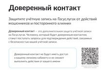 Сервис «Доверенный контакт» (далее – Сервис), направленном на повышение уровня цифровой безопасности граждан и защиту их персональных данных при использовании Единого портала государственных и муниципальных услуг (функций) и других информационных систем, поддерживающих идентификацию, аутентификацию и авторизацию через Единую систему идентификации и аутентификации.