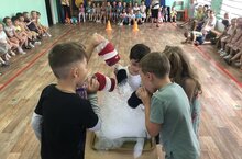 Восторг детей вызвал гордый правитель подводной страны, повелитель морей и океанов - царь Нептун его дочка Золотая рыбка. Вместе с ними было проведено много различных игр и эстафет.