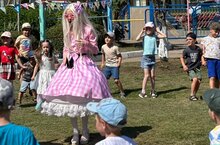 Также Нептун провел подвижные игры «Море волнуется», где дети изображали красивые морские фигуры; «Принеси царю водицы», где дети в ведерках носили царю воду; игра «Нептун и ладошки», где дети должны были успеть спрятать свои ладошки, чтобы Нептун не дотронулся трезубцем; игра «Ловись рыбка».