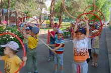 Сегодня на площадке детского сада прошло спортивное развлечение «Веселый обруч».