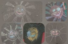 При рисовании асфальтными мелками дети испытывают совсем другие ощущения, чем при работе с карандашом и кисточкой на бумаге.