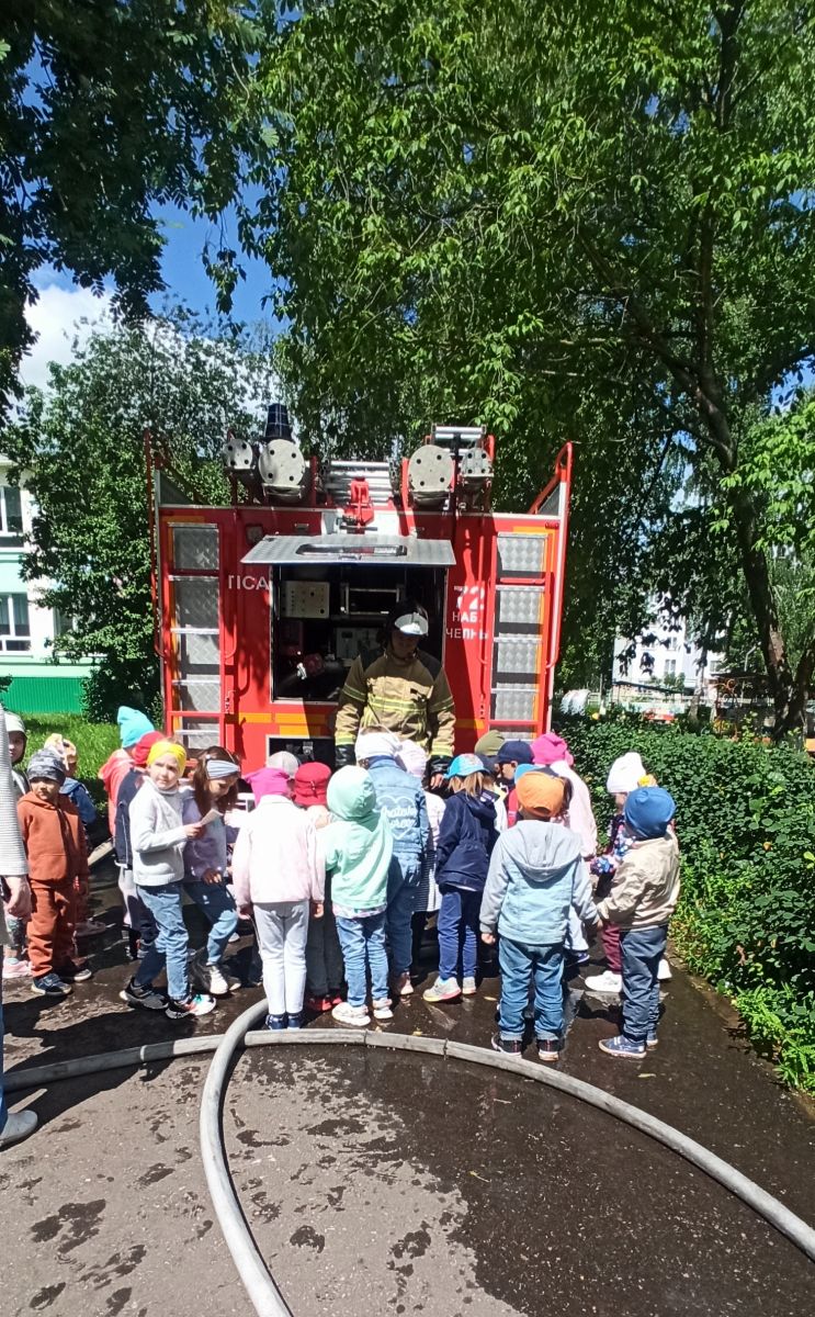 Опубликовано: 28.06.2022Сегодня в рамках проведения тренировки ПЧ-72 МЧС пожарные провели экскурсию для наших воспитанников. Они показали и рассказали о своём автомобиле, снаряжении и боевой одежде пожарного. Также пожарные продемонстрировали детям тушение условного очага возгорания