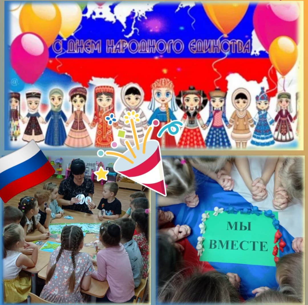 В преддверии этого праздника, благодаря нашим замечательным педагогам все воспитанники были охвачены мероприятиями, посвященными Дню народного единства. Во всех группах проведены беседы о празднике. Совместно с воспитателями дети создали коллективные работы, читали стихи.