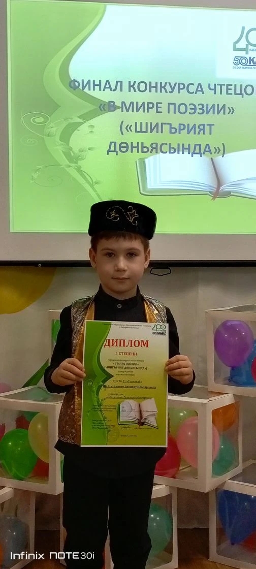 Шайхутдинов Данияр воспитанник подготовительной группы №10 победитель городского творческо-поэтического конкурса «ШИГЪРИЯТ ДОНЬЯСЫНДА»
