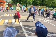 Сегодня в нашем детском саду для детей старших групп прошло мероприятие «Баба Яга против …» совместно с представителями ГИБДД г. Набережные Челны. В игровой форме закрепили представления детей о правилах дорожного движения, о дорожных знаках, о правилах поведения на улице. В конце мероприятия все дети с героями исполнили общий флэшмоб.