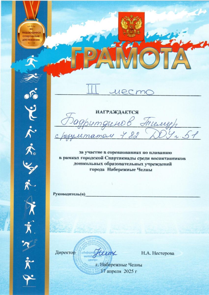Сегодня наши воспитанники отлично поучаствовали в соревнованиях по плаванию среди воспитанников ДОУ Автозаводского райоа города Набережные Челны.