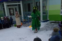 Сегодня в детском саду провожали зиму. Дети с большим удовольствием пели, плясали, участвовали в различных конкурсах. И конечно же всех угостили вкусными блинами.