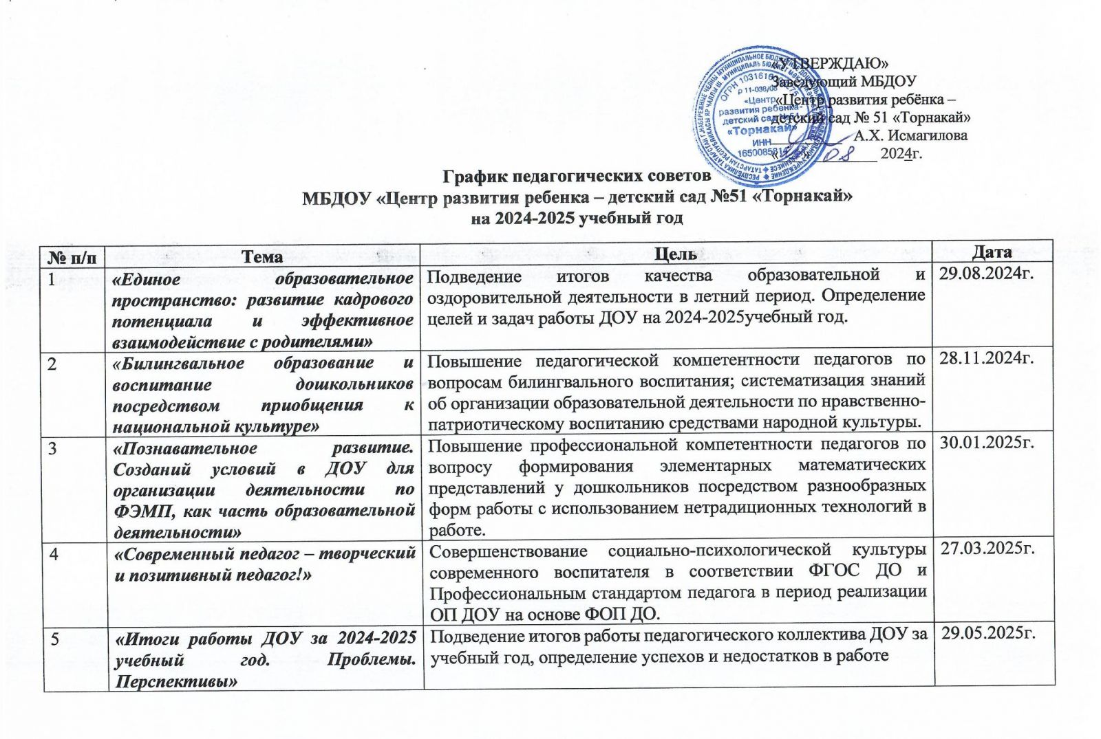 График педагогических советов на 2024-25 учебный год