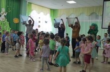 Сегодня в музыкальном зале прошло спортивное развлечене "Путешествие к солнышку, ветру и дождику". Дети проходили спортивные эстафеты, играли.
