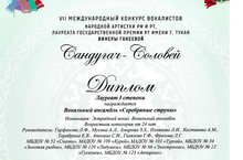 Музыкальные работники нашего детского сада в составе вокального ансамбля «Серебряные струны» приняли участие в VIIМеждународном конкурсе вокалистов народной артистки РФ и РТ лауреата государственной премии РТ имени Г.Тукая Винеры Ганеевой «Сандугач – Соловей», проходивший в г. Казань. Желаем коллективу творческих успехов.