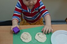 Малыши и мамочки клуба неорганизованных детей «Первые шаги» ДОУ № 54 "Искорка" с удовольствием лепят из теста и делают лучики солнца из пластилина…