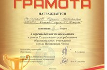 Поздравляем нашего педагога -психолога Ахмадьянову Нуранию Махияновну с очередной победой в соревнованиях по шахматам в рамках Спартакиады среди работников образовательных учреждений города Набережные Челны.