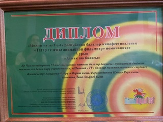 Опубликовано: 25.11.2023Сегодня в городе Казани в кинотеатре «МИР» состоялся финал республиканского детского кинофестиваля «МиллиМультFest». Было отправлено 497 работ со всей Республики Татарстан. В финал вышли 25 организаций. Наш детский сад N55 «Шалунишка» занял почетное 3 место в номинации «Анимационный фильм на татарском языке» - «Ахмак аю баласы».