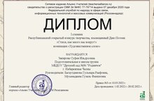 Поздравляем воспитанницу подготовительной группы №7 Закирову Суфию с победой в Республиканском открытом конкурсе творчества, посвященном Дню Поэзии "Стихи, как много вас вокруг!" (руководители Багаутдинова Г.Р., Мухамадеева Г.Ф.)