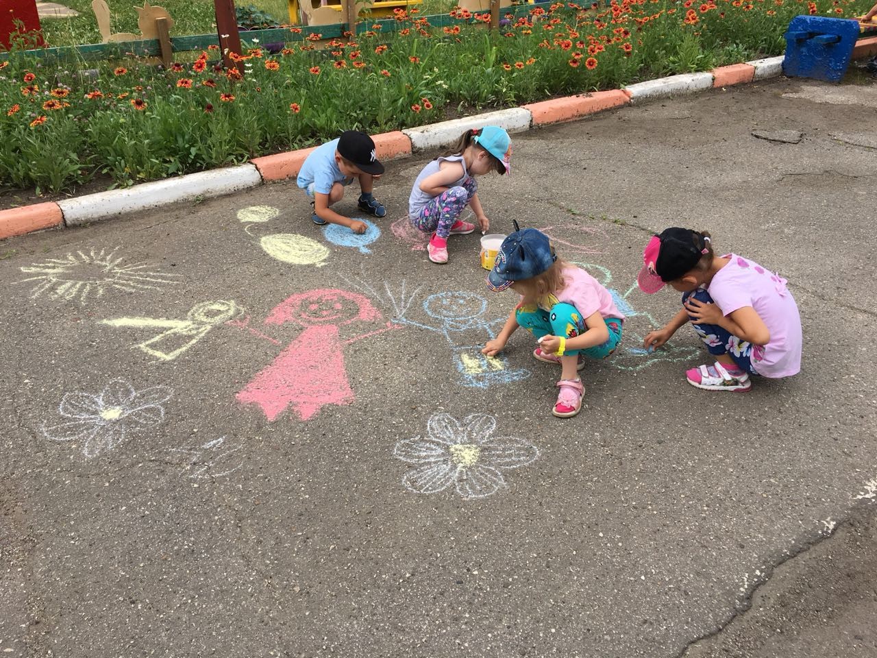 Не смотря на дождливую погоду 1 июня, вчера и сегодня в саду прошли развлечения в честь Дня Защиты детей. В группах были проведены беседы, игры для детей. На улице дети играли в подвижные игры, рисовали на асфальте, пускали мыльные пузыри.