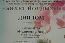 Поздравляем ансамбль "Күчтәнәч" и воспитанницу группы №6 Ханову Марьям (муз.руководитель Султанова Г.Б.) с победой в республиканском фестивале-конкурсе "Бәхет йолдызы" в номинациях "Вокал" и "Вокал-соло"!!!