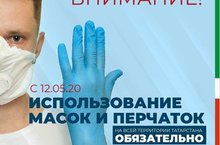 Согласно постановлению кабинета министров РТ №374 «О мерах по предотвращению распространения в Республике Татарстан новой коронавирусной инфекции», с 12 мая жители республики обязаны носить маски (респираторы) и перчатки в объектах розничной торговли, общественном транспорте и такси. 12.05.2020