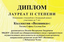 17 и 18 февраля в г.Набережные Челны проходил фестиваль-конкурс эстрадного вокала "Чулман тургае. Жаворонок Закамья 2018". Более 200 конкурсантов из города Набережные Челны, Ижевска, Елабуги, Мамадыша, Чистополя приняли участие в этом конкурсе. Члены жюри особо отметили участников из дошкольных учреждений, которые в этом году отличились как качеством исполнительского мастерства, так и сценическими костюмами. Уровень которых значительно вырос в сравнении с прошлыми годами. Наши воспитанники с песней "Ложки деревянные" тоже приняли участие в конкурсе и завоевали ДИПЛОМ ЛАУРЕАТ II СТЕПЕНИ. ПОЗДРАВЛЯЕМ!!!
