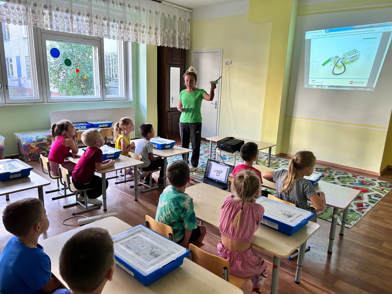 Опубликовано: 13.09.2023В рамках проекта "РобоТехноПарк "КАЛЕЙДОСКОП" в клубе изобретательства и робототехнического творчества сегодня вновь прошло занятие с конструкторами LEGO-WEDO 2.0. Дети подготовительной к школе группы № 7 создали и запустили модель «Палочка на двигателе».