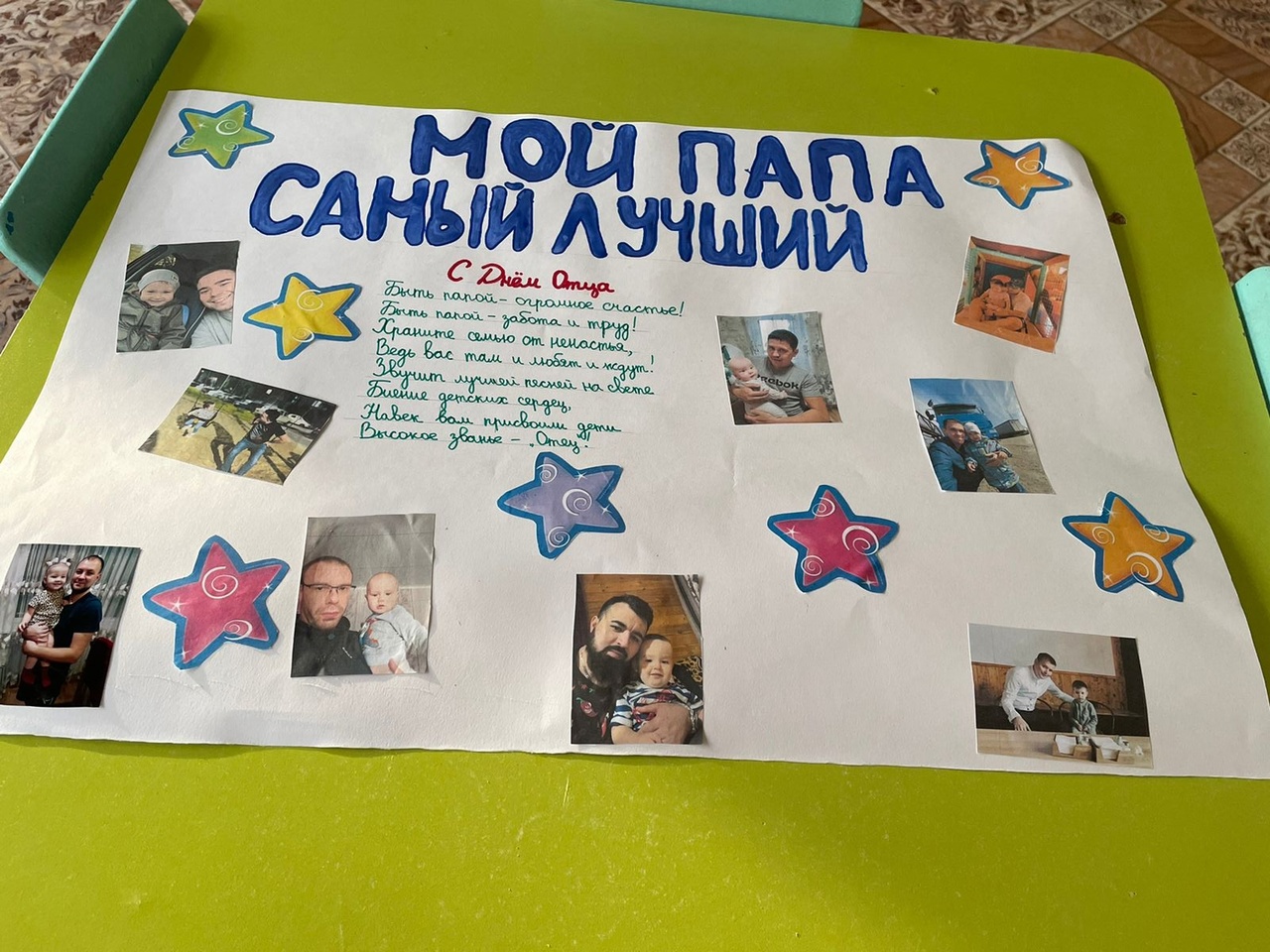 - с помощью воспитателей были открыты творческие мастерские, на которых затейники сделали своими руками подарки для пап, поздравительные открытки «Любимому папе». Вложили в них частичку своей детской души и большую любовь к самому важному родному человеку в их жизни;