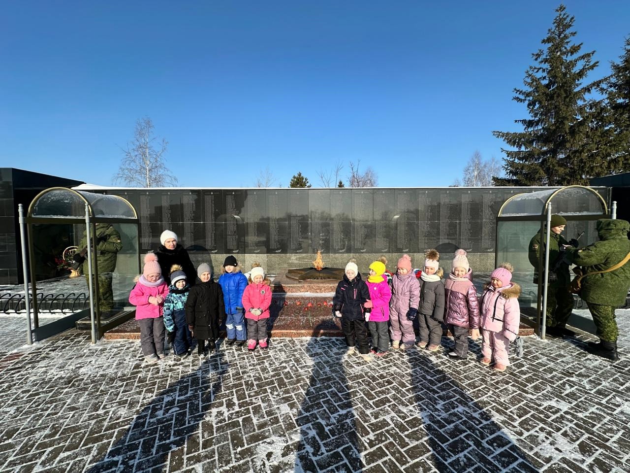 Сегодня дети старшей группы № 1 совершили познавательную экскурсию к Вечному огню.Воспитатель группы Хабирова Гулшат Салимяновна рассказала ребятам о том, что Вечный огонь является особенным воинским памятником, знаком благодарности тем, кто защищал нашу страну. Мальчишки и девчонки возложили цветы к памятнику погибших воинов, почтили память героев.