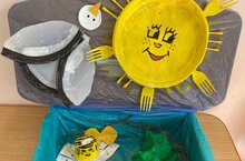 Были представлены творческие работы из подручного бросового материала. Из обычных пластиковых ложек, крышек, палочек для суши, бутылок, вилок, тарелок, коробок, трубочек дети и родители смастерили великолепные поделки и костюмы для показа мод, приложив к этому немного творчества и фантазии!