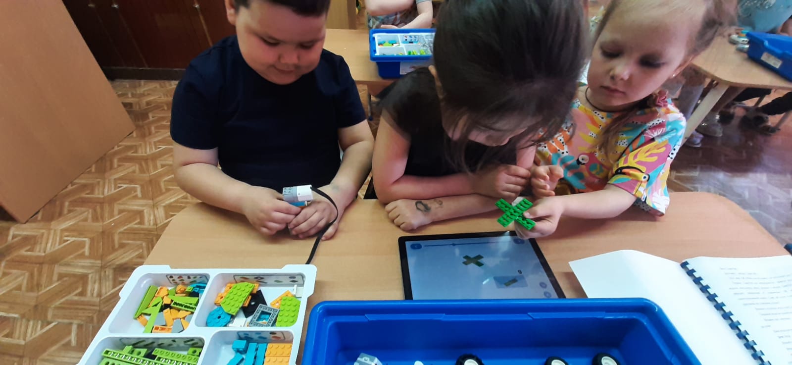 Наши друзья Фиксики пригласили ребят в мастерскую конструировать вентилятор, который сможет крутить лопастями. Дети при помощи схемы собрали рабочую модель – вентилятора и, создав программу, запустили его.